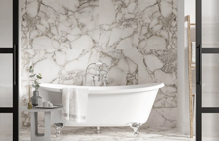 “Large format tiles will make your space feel less cluttered, opening the space and giving the illusion of a larger room, while letting your tiles’ true beauty shine through. “