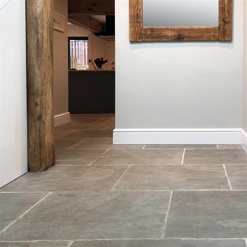 Offering tumbled edges and a textured surface, Umbrian Grey is an excellent example of a grey flagstone flooring solution used properly.
