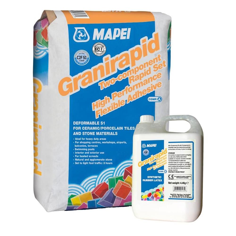 With natural stone tiles, we recommend a high specification, rapid setting, and flexible adhesive, such as Mapei S1 White Rapidset Adhesive. Mapei S1 White Rapidset Adhesive is perfect for use with stone, being formulated specifically for use with these sorts of tiles.