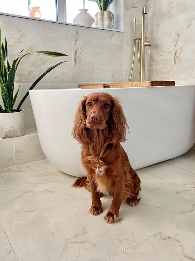 The finished result? A spa-style bathroom that feels elegant yet welcoming, enjoyed by the whole family – even Millie & Maia! For more dreamy interiors, renovation updates, and adorable dog content, follow Caroline at @meetxmillie over on Instagram.