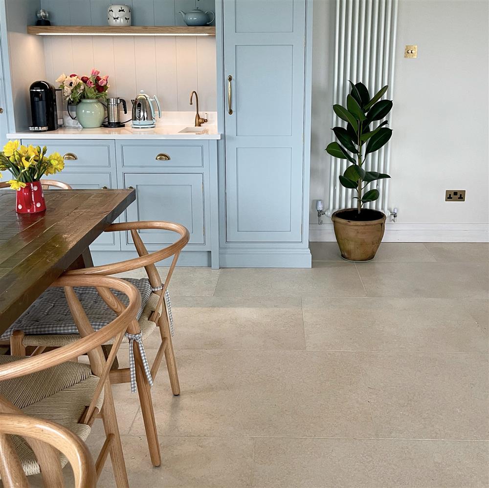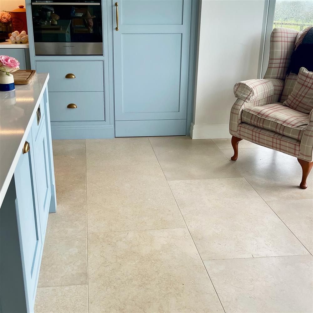 “I love the soft and light look the St Emilion Limestone creates, they go beautifully with our light blue kitchen and white stone worktop.”