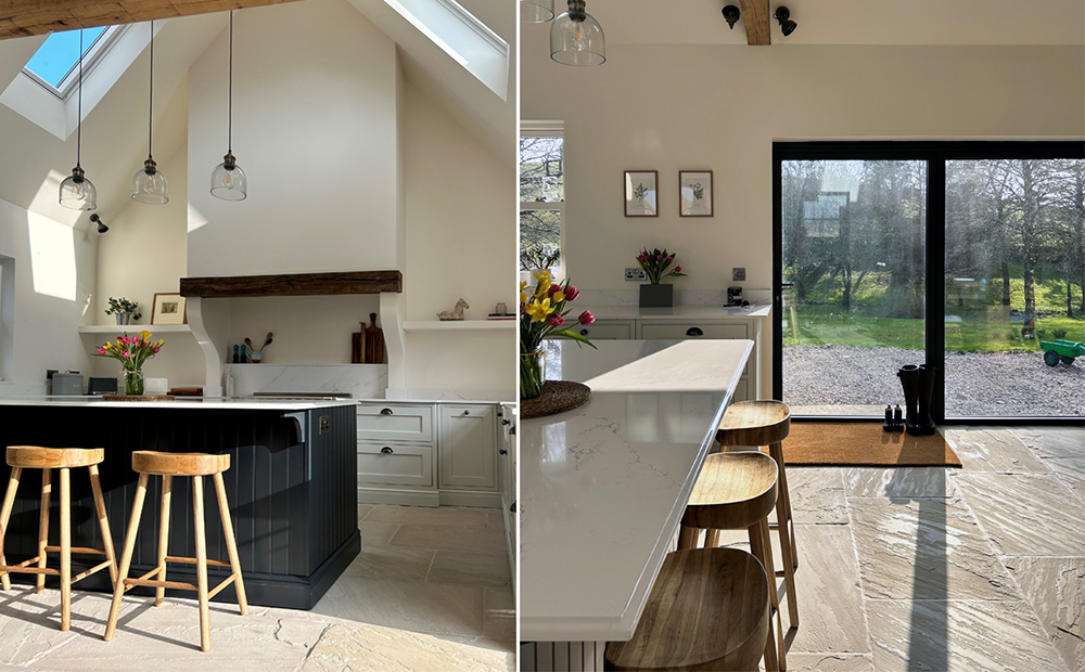 If your kitchen features a lot of exposed brickwork, then a smooth, neutral Indian sandstone can be the perfect flooring solution that complements the more rustic feel while keeping a consistent warmer scheme throughout the room.